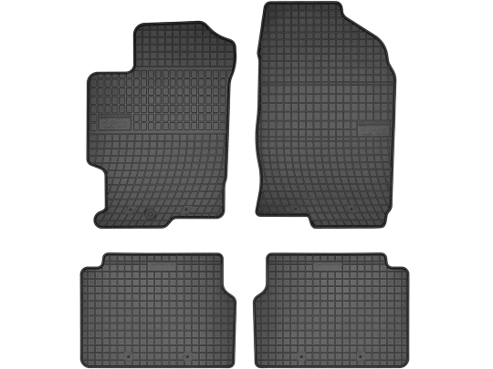 Dywaniki gumowe wykonane są z czarnej, wysokogatunkowej i bezzapachowej gumy o podwyższonej odporności na ścieranie. Posiadają estetyczny rant oraz gęstą kratkę, które zapobiegają przedostawaniu się zabrudzeń na tapicerkę samochodu.