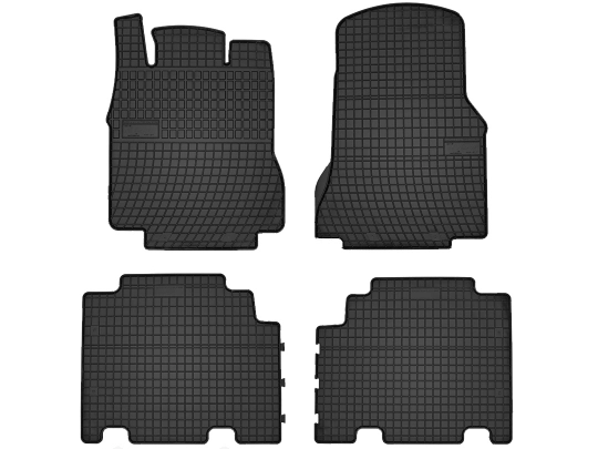 Dywaniki gumowe wykonane są z czarnej, wysokogatunkowej i bezzapachowej gumy o podwyższonej odporności na ścieranie. Posiadają estetyczny rant oraz gęstą kratkę, które zapobiegają przedostawaniu się zabrudzeń na tapicerkę samochodu.
