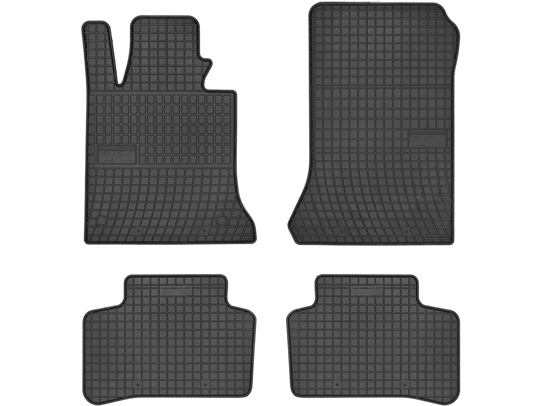 Dywaniki gumowe wykonane są z czarnej, wysokogatunkowej i bezzapachowej gumy o podwyższonej odporności na ścieranie. Posiadają estetyczny rant oraz gęstą kratkę, które zapobiegają przedostawaniu się zabrudzeń na tapicerkę samochodu.