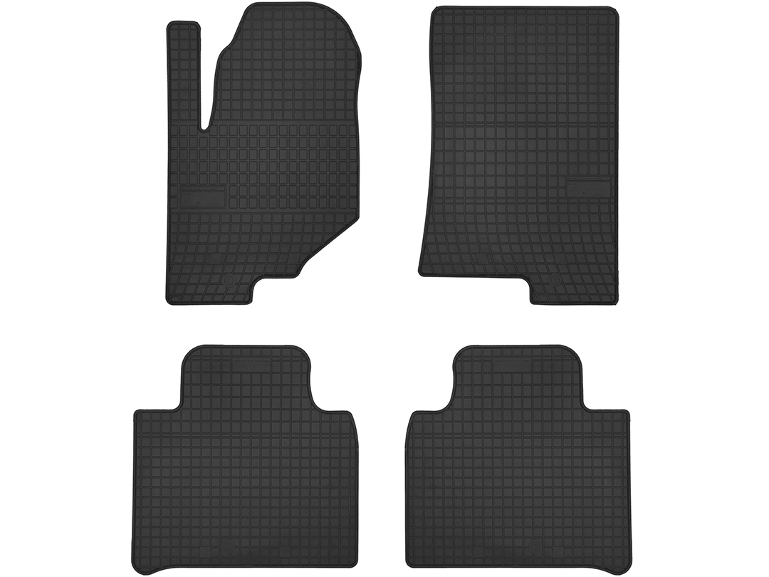 Dywaniki gumowe wykonane są z czarnej, wysokogatunkowej i bezzapachowej gumy o podwyższonej odporności na ścieranie. Posiadają estetyczny rant oraz gęstą kratkę, które zapobiegają przedostawaniu się zabrudzeń na tapicerkę samochodu.
