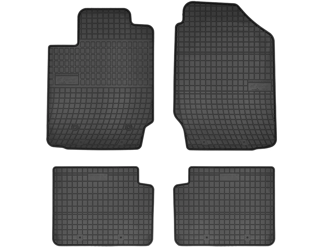 Dywaniki gumowe wykonane są z czarnej, wysokogatunkowej i bezzapachowej gumy o podwyższonej odporności na ścieranie. Posiadają estetyczny rant oraz gęstą kratkę, które zapobiegają przedostawaniu się zabrudzeń na tapicerkę samochodu.