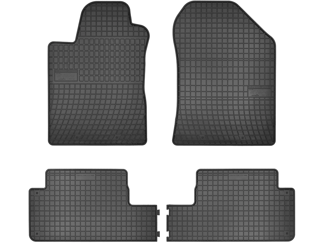 Dywaniki gumowe wykonane są z czarnej, wysokogatunkowej i bezzapachowej gumy o podwyższonej odporności na ścieranie. Posiadają estetyczny rant oraz gęstą kratkę, które zapobiegają przedostawaniu się zabrudzeń na tapicerkę samochodu.