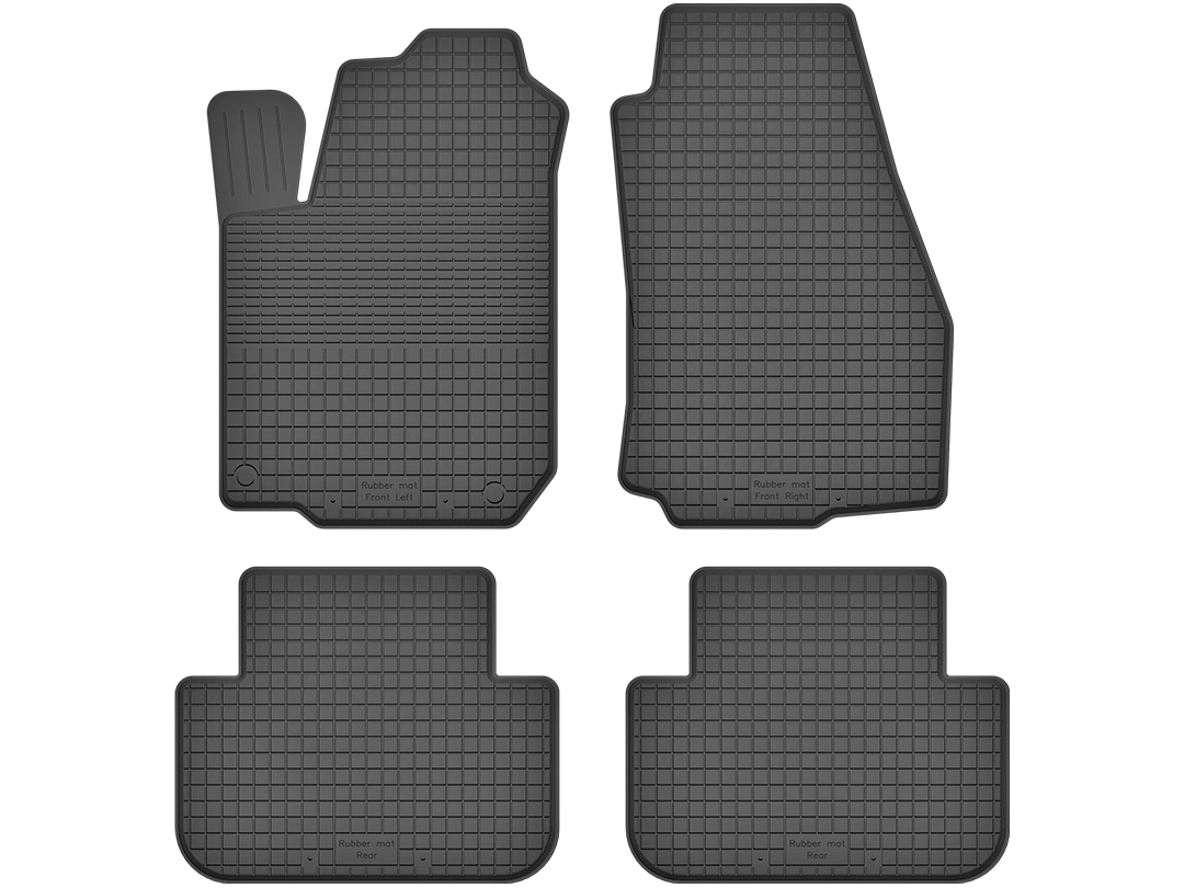 Dywaniki wykonane są z czarnej, wysokogatunkowej gumy o podwyższonej odporności na ścieranie.