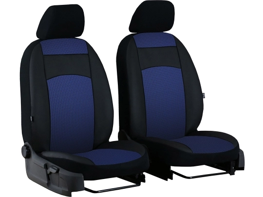 Pokrowce samochodowe Materiałowe Royal - Fotele przednie to połączenie wysokiej jakości materiału tapicerskiego ze skórą ekologiczną. Materiały te są trwałe i łatwe w utrzymaniu czystości. Pokrowce mają podwyższoną odporność na ścieralność oraz zużycie.
