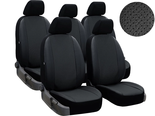 Pokrowce samochodowe Skórzane Perline wykonane są z wysokiej jakości perforowanej skóry ekologicznej o strukturze skóry naturalnej. Materiał ten jest trwały oraz doskonale przepuszcza powietrze. Pokrowce mają podwyższoną odporność na ścieralność oraz zużycie.